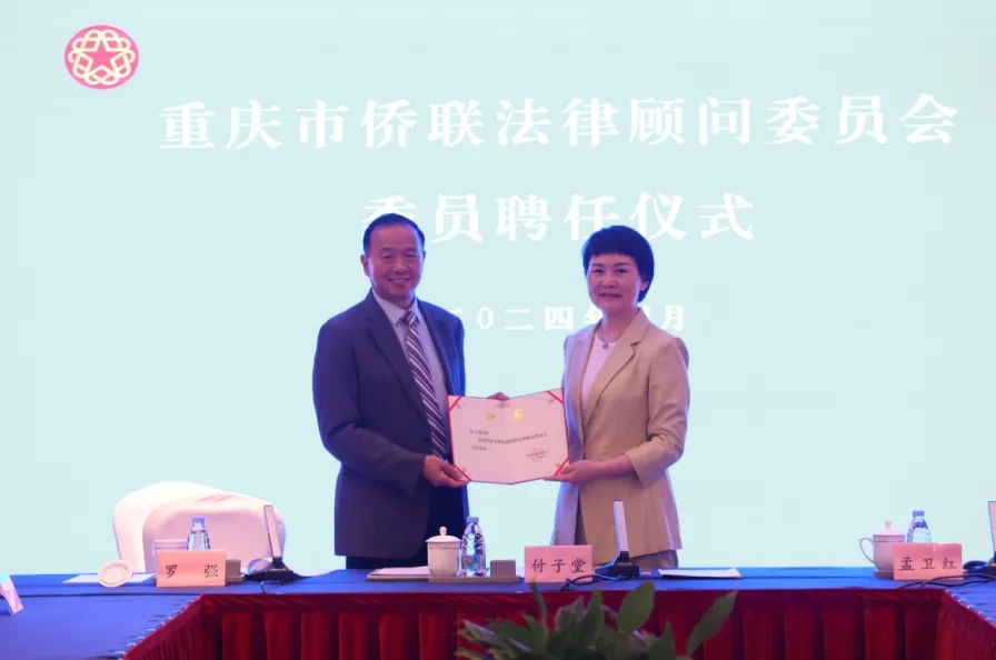 為深入學(xué)習(xí)貫徹習(xí)近平總書(shū)記關(guān)于僑務(wù)工作和群團(tuán)工作的重要論述,不斷提升法顧委“服務(wù)大局、服務(wù)僑胞、服務(wù)僑聯(lián)”工作質(zhì)效,4月16日,重慶市僑聯(lián)舉行新一輪法顧委委員聘任儀式,向新聘任的委員代表頒發(fā)聘書(shū)。重慶市僑聯(lián)黨組書(shū)記、主席,市委統(tǒng)戰(zhàn)部副部長(zhǎng)孟衛(wèi)紅,市僑聯(lián)法顧委新聘主任委員,市人大法制委員會(huì)主任委員付子堂出席儀式并講話。