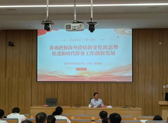 近日,泉州市僑聯(lián)黨組書記、主席溫錦輝應(yīng)邀到泉州市委黨校,為學(xué)員作題為《準(zhǔn)確把握海外僑情新變化新態(tài)勢 推進(jìn)新時代僑務(wù)工作創(chuàng)新發(fā)展》專題授課。這是近年來泉州市委黨校迎來的“第一堂”僑務(wù)知識課。僑務(wù)知識進(jìn)黨校,是泉州市僑聯(lián)貫徹落實(shí)習(xí)近平總書記關(guān)于僑務(wù)工作的重要論述和黨中央新時代僑務(wù)工作方針,進(jìn)一步加強(qiáng)和改進(jìn)新時期僑聯(lián)工作,推動僑務(wù)工作創(chuàng)新發(fā)展的一項(xiàng)具體舉措。