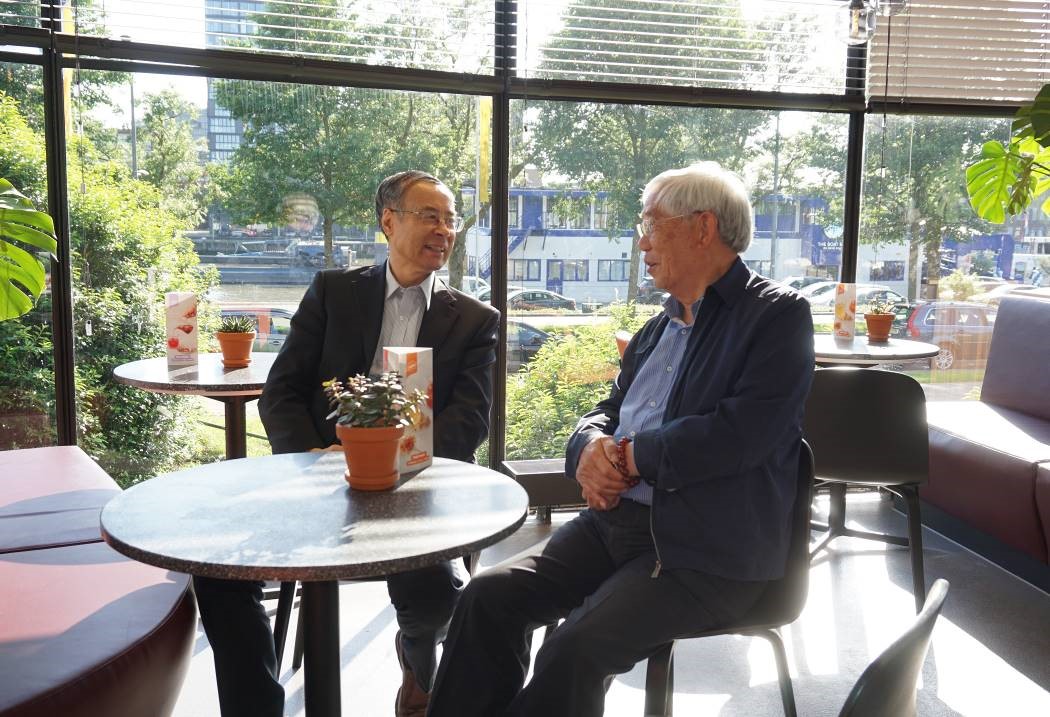 5日下午,萬立駿專程看望了在荷的中國僑聯(lián)原海外顧問、老僑領(lǐng)胡志光先生。他詳細詢問了老人的身體狀況和生活情況,對他長期以來對僑聯(lián)工作和旅荷僑界工作作出的貢獻表示敬意。萬立駿表示,新僑與老僑工作并重是僑聯(lián)的工作方針,我們既要關(guān)注新一代僑胞的發(fā)展,更不能忘了老一代僑胞的貢獻。要把僑界多年來積累的好經(jīng)驗好做法總結(jié)好傳承好,把僑界多年來形成的好風氣好面貌鞏固好發(fā)展好,推動海外僑團僑社工作在原有基礎(chǔ)上取得新的成績、作出新的貢獻。
