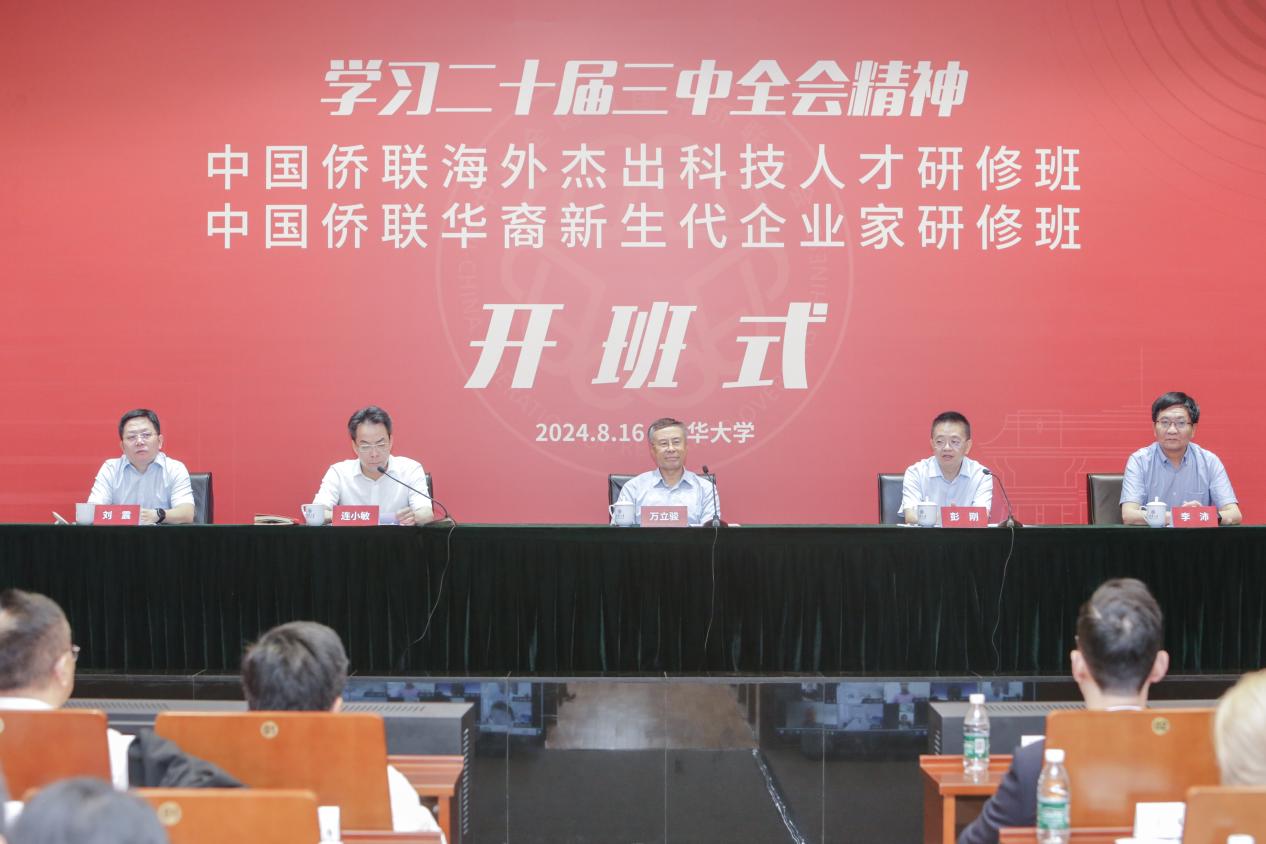 8月16日上午,中國僑聯(lián)海外杰出科技人才研修班(線上)、華裔新生代企業(yè)家研修班(線下)在清華大學(xué)開班。中國僑聯(lián)黨組書記、主席萬立駿出席開班式并作“凝僑心助改革發(fā)展,集僑智促科技創(chuàng)新,為中國式現(xiàn)代化作出僑界新貢獻(xiàn)”主題報(bào)告,希望研修班學(xué)員和廣大僑胞學(xué)習(xí)領(lǐng)會(huì)二十屆三中全會(huì)精神,凝聚僑心、匯聚僑智、發(fā)揮僑力,為進(jìn)一步全面深化改革、推進(jìn)中國式現(xiàn)代化貢獻(xiàn)僑界力量。中國僑聯(lián)黨組成員、副主席連小敏主持開班式,清華大學(xué)黨委常委、副校長彭剛出席開班式并致辭。