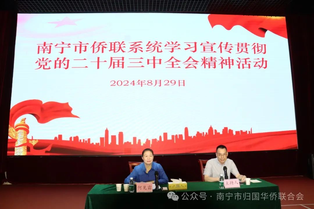 8月29日,南寧市僑聯(lián)在”正培·僑胞之家”舉行學習宣傳貫徹黨的二十屆三中全會精神活動。市委統(tǒng)戰(zhàn)部副部長、市臺辦主任(兼)、市僑辦主任(兼)、市二級巡視員何見霜作宣講,市僑聯(lián)黨組書記陳章雄主持活動。各縣(市、區(qū))和廣西-東盟經開區(qū)僑聯(lián),各團體會員負責人和僑界代表人士、市僑聯(lián)機關全體人員參加活動。