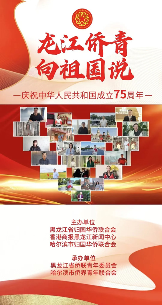 在新中國(guó)成立75周年之際,由黑龍江省僑聯(lián)、香港商報(bào)黑龍江新聞中心以及哈爾濱市僑聯(lián)主辦,黑龍江省僑聯(lián)青年委員會(huì)、哈爾濱市僑界青年聯(lián)合會(huì)承辦的“龍江僑青向祖國(guó)說(shuō)”短視頻展播活動(dòng),于9月15日正式啟動(dòng)。此次活動(dòng)精心策劃推出了34期鴻篇巨制原創(chuàng)短視頻,借助香港商報(bào)官網(wǎng)、香港商報(bào)黑龍江辦事處視頻號(hào)、華人頭條、今日頭條、黑龍江省僑聯(lián)微信公眾號(hào)與視頻號(hào)、黑龍江省僑青微信公眾號(hào)與視頻號(hào)等全媒體矩陣展播,總瀏覽量超7000多萬(wàn)?;顒?dòng)匯聚了來(lái)自近20個(gè)國(guó)家、各行各業(yè)的75位歸僑僑眷、海外僑胞及留學(xué)生等僑界青年代表。他們以不同視角和經(jīng)歷,共同抒發(fā)對(duì)祖國(guó)的熱愛(ài)與祝福,充分展現(xiàn)新時(shí)代僑界青年的風(fēng)采與擔(dān)當(dāng),為偉大祖國(guó)的生日獻(xiàn)上了一份獨(dú)特而珍貴的賀禮。