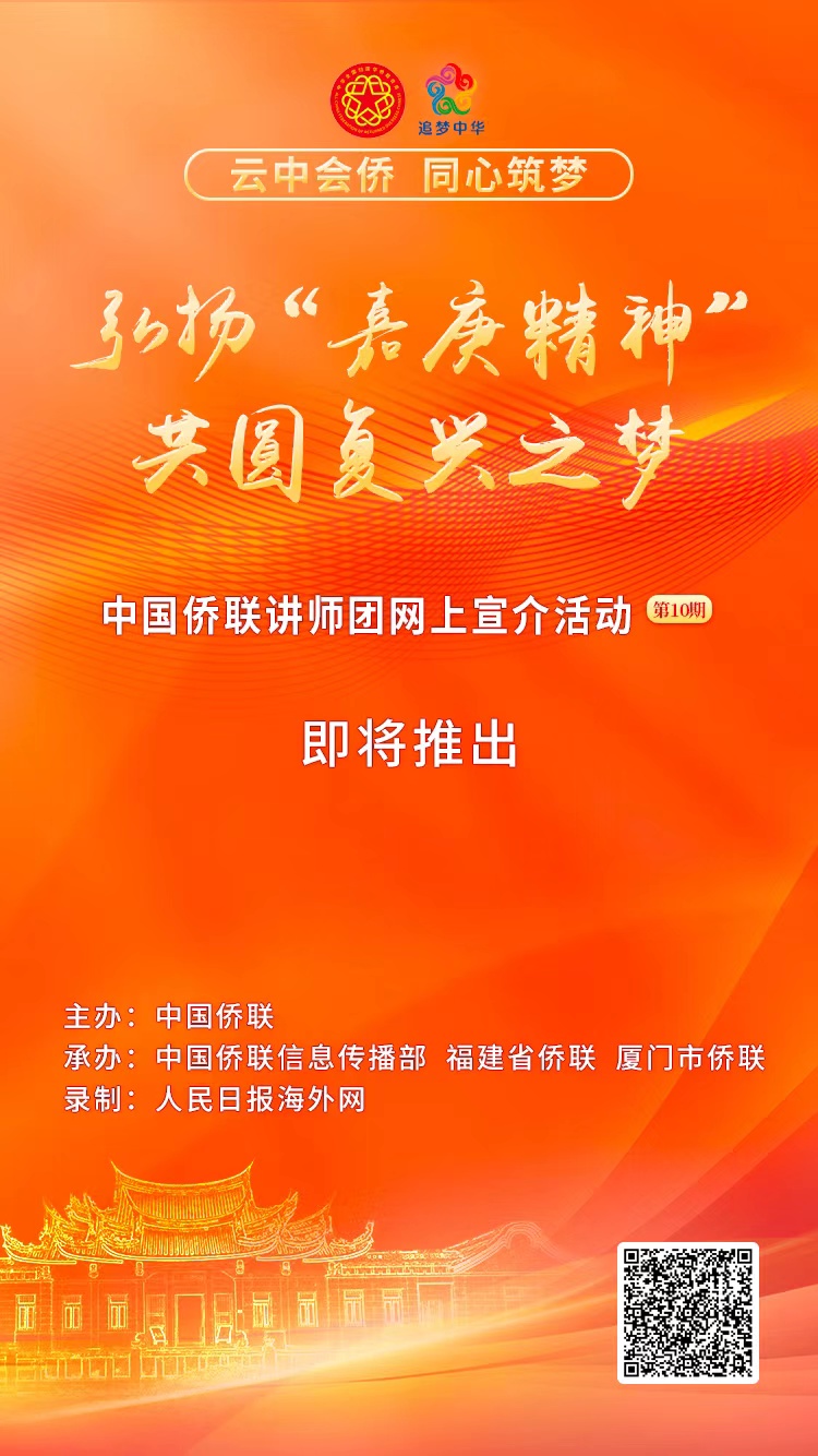 為深入學(xué)習(xí)貫徹習(xí)近平新時(shí)代中國(guó)特色社會(huì)主義思想和黨的二十屆三中全會(huì)精神,在陳嘉庚先生誕辰150周年之際,引導(dǎo)和鼓勵(lì)廣大歸僑僑眷和海外僑胞在新時(shí)代傳承弘揚(yáng)“嘉庚精神”,凝聚僑心僑力僑智,積極參與到實(shí)現(xiàn)第二個(gè)百年奮斗目標(biāo)的歷史進(jìn)程中去,為實(shí)現(xiàn)中華民族偉大復(fù)興中國(guó)夢(mèng)作出新的貢獻(xiàn),中國(guó)僑聯(lián)策劃錄制并即將推出講師團(tuán)網(wǎng)上宣介(第十期)視頻。