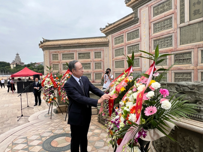 10月21日是中國僑聯首任主席陳嘉庚先生誕辰150周年,在中國僑聯與中共福建省委共同舉辦的“弘揚‘嘉庚精神’ 共圓民族復興之夢”座談會后,中國僑聯在廈門集美鰲園舉辦敬獻花籃儀式,中國僑聯、全國各省級僑聯、海外僑胞、廈門市和集美區(qū)僑聯分別向陳嘉庚先生陵園敬獻花籃,寄托廣大僑界對陳嘉庚先生的深切思念。萬立駿在敬獻花籃儀式上講話,中國僑聯黨組成員、副主席程學源主持儀式。中國僑聯原黨組書記、主席林兆樞、林軍,中國僑聯兼職副主席劉藝良、吳換炎、李興鈺、李占勇、陳潔英、梁謀、李豐、齊志,秘書長陳邁,中國僑聯信息傳播部部長左志強、聯誼聯絡部部長桑寶山、辦公廳副主任張凌,全國各省級僑聯主要負責同志等110余人參加儀式。