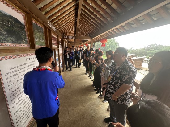 德宏州芒市三臺(tái)山德昂族鄉(xiāng)是中國唯一的德昂族鄉(xiāng),出冬瓜村便隸屬于此。出冬瓜村始建于明、清時(shí)期,是傳統(tǒng)的德昂族村落,村內(nèi)至今仍保留著德昂族古樸原始的民居民風(fēng)民俗,現(xiàn)有“水鼓舞”“達(dá)古達(dá)楞格萊標(biāo)”“澆花節(jié)”“德昂族酸茶制作技藝”4個(gè)(中國)國家級(jí)非物質(zhì)文化遺產(chǎn)名錄。采訪團(tuán)一行來到出冬瓜村,訪鄉(xiāng)風(fēng)傳統(tǒng)、品德昂酸茶、看德昂水鼓舞、賞德昂織錦,感受中華優(yōu)秀傳統(tǒng)文化和非遺文化的獨(dú)特魅力。三臺(tái)山出冬瓜村“僑胞之家+為僑特色服務(wù)+農(nóng)業(yè)文旅融合+以“托啊姆”調(diào)解室提升社會(huì)綜合治理”的僑務(wù)創(chuàng)新工作也讓大家嘖嘖稱贊。