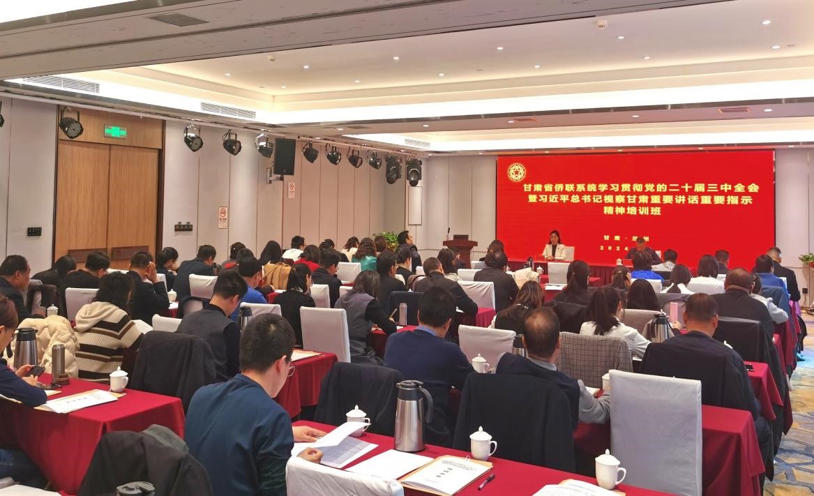 11月8日,甘肅省僑聯(lián)系統(tǒng)學(xué)習(xí)貫徹黨的二十屆三中全會暨習(xí)近平總書記視察甘肅重要講話重要指示精神培訓(xùn)班在蘭舉辦。甘肅省僑聯(lián)黨組成員、副主席、秘書長安亞軍主持開班式,省僑聯(lián)兼職副主席黃煒參加。