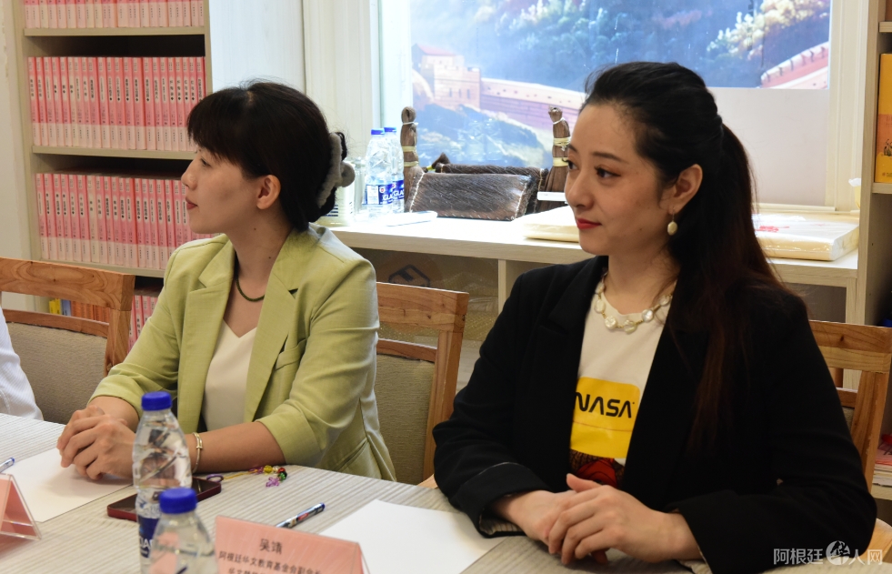 阿根廷華文教育基金會(huì)副會(huì)長(zhǎng)兼阿根廷聯(lián)邦警察大學(xué)研究院中文教育組組長(zhǎng)陳新惠、副會(huì)長(zhǎng)兼靜雅藝術(shù)中心主任吳靖、副會(huì)長(zhǎng)兼阿根廷中國(guó)民族服飾協(xié)會(huì)會(huì)長(zhǎng)陳銘、副會(huì)長(zhǎng)兼南極洲旅行社總經(jīng)理林海洪、副會(huì)長(zhǎng)兼中國(guó)文化推廣中心主任王洪瑚、副會(huì)長(zhǎng)兼中文宣傳部部長(zhǎng)林子俊等,分別向代表團(tuán)闡述了各自的工作內(nèi)容。