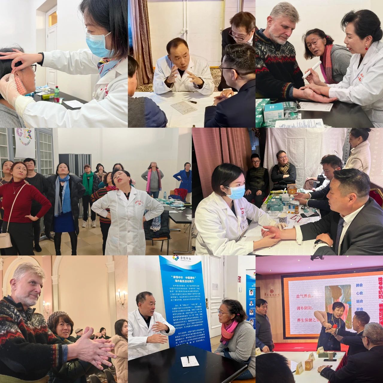 本次中醫(yī)團(tuán)以四川省僑聯(lián)副秘書長牛金劍為團(tuán)長,由成都中醫(yī)藥大學(xué)張虹教授、由鳳鳴教授、肖敏主任醫(yī)師、陳驥教授等6人組成。中醫(yī)團(tuán)在所到各地為僑胞和當(dāng)?shù)孛癖娕e辦中醫(yī)專題科普講座4場,開展現(xiàn)場義診與健康咨詢4場,提供咨詢服務(wù)超500人(次),并與法國少陽國際中醫(yī)藥大學(xué)負(fù)責(zé)人以及部分中外中醫(yī)醫(yī)師進(jìn)行交流座談?;顒拥玫胶M鈨S胞、我駐外使領(lǐng)館、海外中醫(yī)協(xié)會以及外國友人的熱烈歡迎和高度評價(jià)。