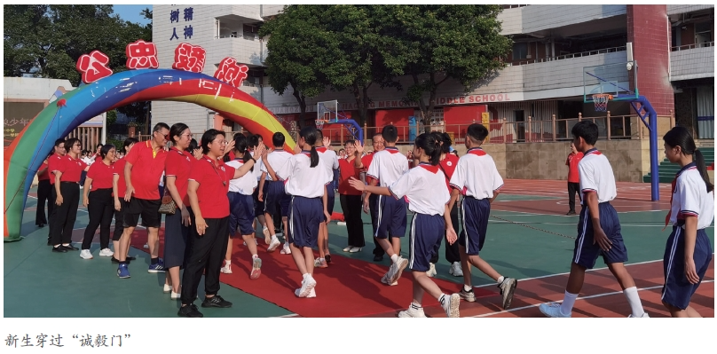 廣州市陳嘉庚紀念中學(xué)的開學(xué)典禮有一個傳統(tǒng):新生入學(xué)都要穿過一道“誠毅門”。青春洋溢的少年們踩著紅毯,在分列于拱門兩旁的老師的歡迎下,有序地穿過“誠毅門”,成為一名嘉庚學(xué)子。開學(xué)的第一課則是“誠毅忠公”思想教育課。每屆新生入學(xué),老師都安排這節(jié)課,向?qū)W生講述源于“嘉庚精神”的校訓(xùn)——“誠毅忠公”的內(nèi)涵:誠——誠實,誠以為國,誠信待人,實事求是;毅——堅毅,毅以處事,追求理想,艱苦奮斗;忠——愛國,忠于國家,心懷天下,關(guān)心民生;公——責(zé)任,大公無私,服務(wù)他人,奉獻社會。