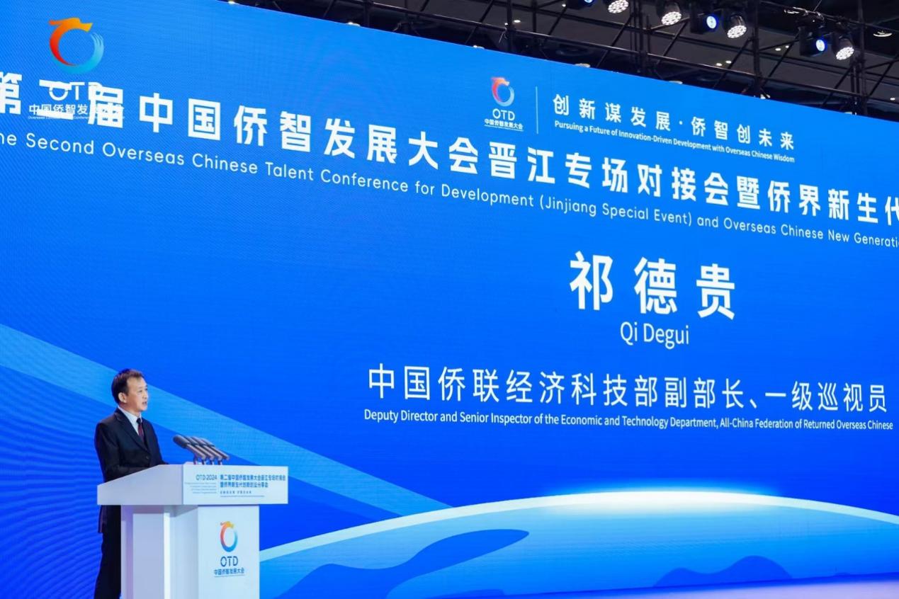 12月14日,由中國僑聯(lián)新僑創(chuàng)新創(chuàng)業(yè)聯(lián)盟等主辦的第二屆中國僑智發(fā)展大會晉江專場對接會暨僑界新生代創(chuàng)新創(chuàng)業(yè)分享會在福建晉江舉辦。福建省委常委、統(tǒng)戰(zhàn)部部長林文斌,中國僑聯(lián)經(jīng)濟(jì)科技部副部長、一級巡視員祁德貴,泉州市委常委、晉江市委書記張文賢出席活動并致辭。福建省委統(tǒng)戰(zhàn)部副部長、省僑辦主任肖華鑫主持活動。來自近20個國家(地區(qū))的80名海外高層次人才和62個國家(地區(qū))的300多名海外社團(tuán)領(lǐng)袖、僑商、客商代表參加活動。