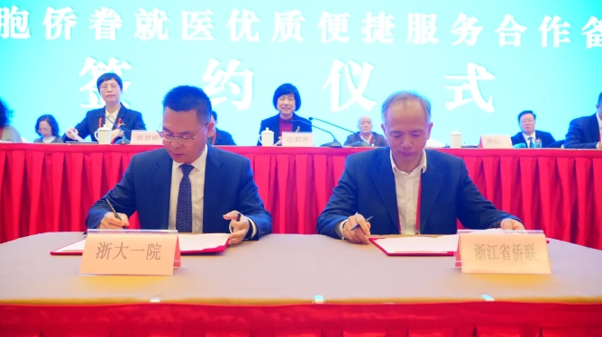 會議期間,省僑聯(lián)黨組成員、副主席周松一,浙大一院常務副書記、副院長邵浙新分別代表雙方單位簽訂了《提升僑胞僑眷就醫(yī)優(yōu)質服務合作備忘錄》。