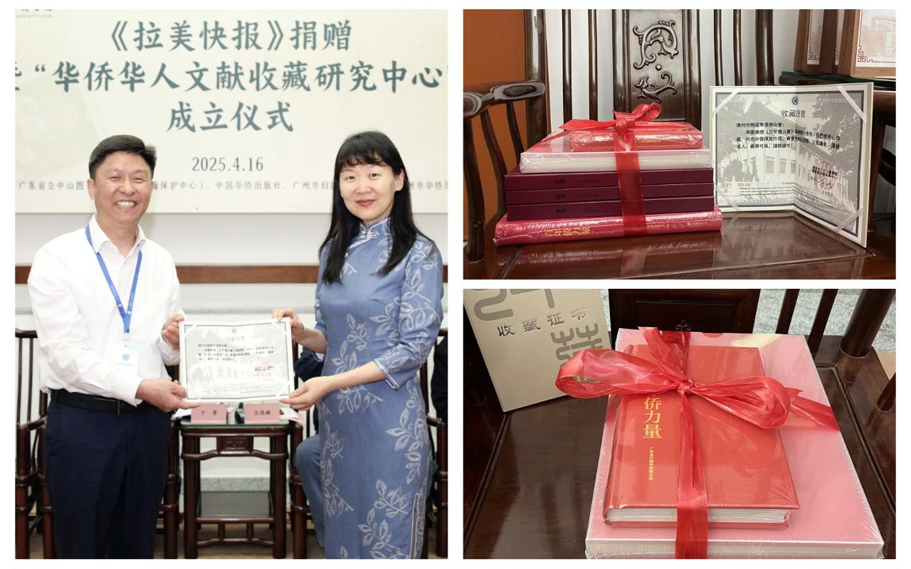 4月16日,《拉美快報(bào)》捐贈(zèng)儀式暨“華僑華人文獻(xiàn)收藏研究中心”成立儀式在廣東省立中山圖書館舉行。廣州市歸國華僑聯(lián)合會(huì)黨組書記、主席卞勇,廣東省人民政府僑務(wù)辦公室原主任呂偉雄,中國華僑出版社綜合編輯室主任姜軍,廣東省立中山圖書館館長方家忠,廣州市華僑歷史學(xué)會(huì)會(huì)長林干等出席儀式。