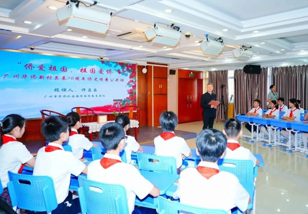活動以一場穿越歷史的沉浸式僑史情景公開課為核心亮點,由廣州市華僑外國語學校黨總支書記許昌良擔任主講人,以“往昔?僑愛筑家園”“今朝?祖國護僑情”“明日?僑心向未來”三幕敘事結(jié)構(gòu),串聯(lián)起華僑新村70年風雨歷程。