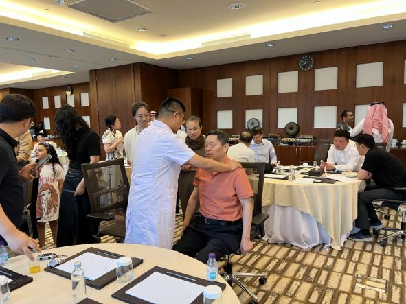 在沙期間,中醫(yī)團(tuán)與中國駐沙特阿拉伯大使館進(jìn)行了工作交流;拜訪了拉希德家族企業(yè)的Inaya醫(yī)學(xué)院和吉達(dá)市長家族企業(yè)NESMA,圍繞陜西中醫(yī)藥在沙特發(fā)展進(jìn)行了探討交流;走訪了沙特阿拉伯陜西商會和吉達(dá)華人商會等華僑華人社團(tuán),聽取他們對中醫(yī)藥出海的意見建議,并組織開展了中醫(yī)暖僑及文化交流活動。