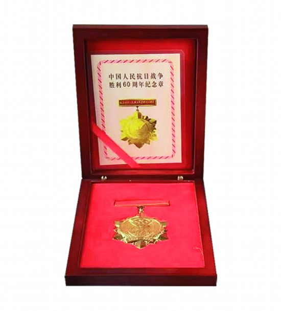 郭霽云榮獲的“中國人民抗日戰(zhàn)爭勝利60周年紀念章”