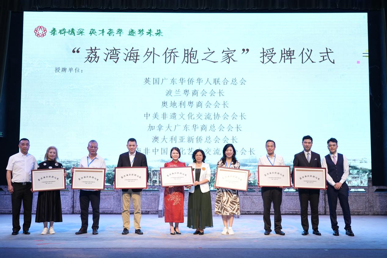 (圖:荔灣區(qū)僑聯(lián)向海外友好僑社團授予“荔灣海外僑胞之家”牌匾)