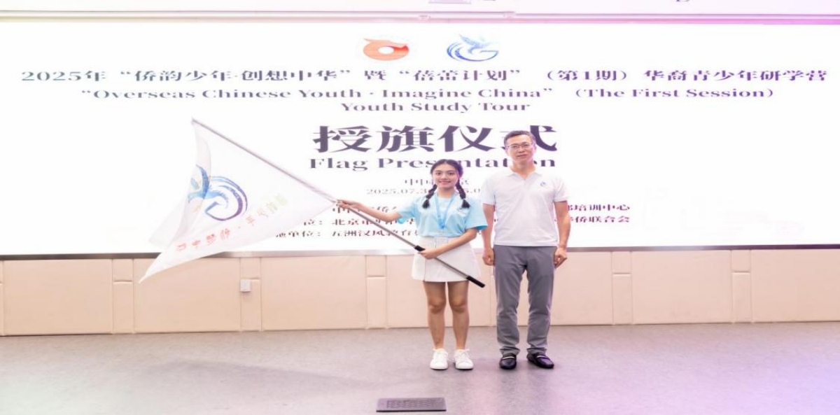 7月30日-8月5日,由中國(guó)華僑公益基金會(huì)和中國(guó)僑聯(lián)干部培訓(xùn)中心共同舉辦的2025 年“僑韻少年·創(chuàng)想中華”暨蓓蕾計(jì)劃(第1期)華裔青少年研學(xué)營(yíng)在北京和崇禮兩地舉行。來(lái)自西班牙、希臘、印尼、美國(guó)等14個(gè)國(guó)家的38名海外華裔華僑青少年們走進(jìn)中國(guó)傳統(tǒng)文化地標(biāo)、博物館,通過(guò)特色活動(dòng)感受奧運(yùn)精神,厚植家國(guó)情懷,在沉浸式體驗(yàn)中觸摸中華文化根脈,開(kāi)啟一場(chǎng)跨越山海的“尋根之旅”。中國(guó)僑聯(lián)公益事業(yè)管理服務(wù)中心副主任馬鑫參加開(kāi)營(yíng)儀式并為研學(xué)營(yíng)授旗,中國(guó)華僑公益基金會(huì)理事長(zhǎng)尹媛媛致歡迎辭。