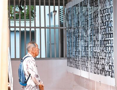 在吉隆坡南僑機(jī)工紀(jì)念館內(nèi),一名老人觀看南僑機(jī)工照片墻。