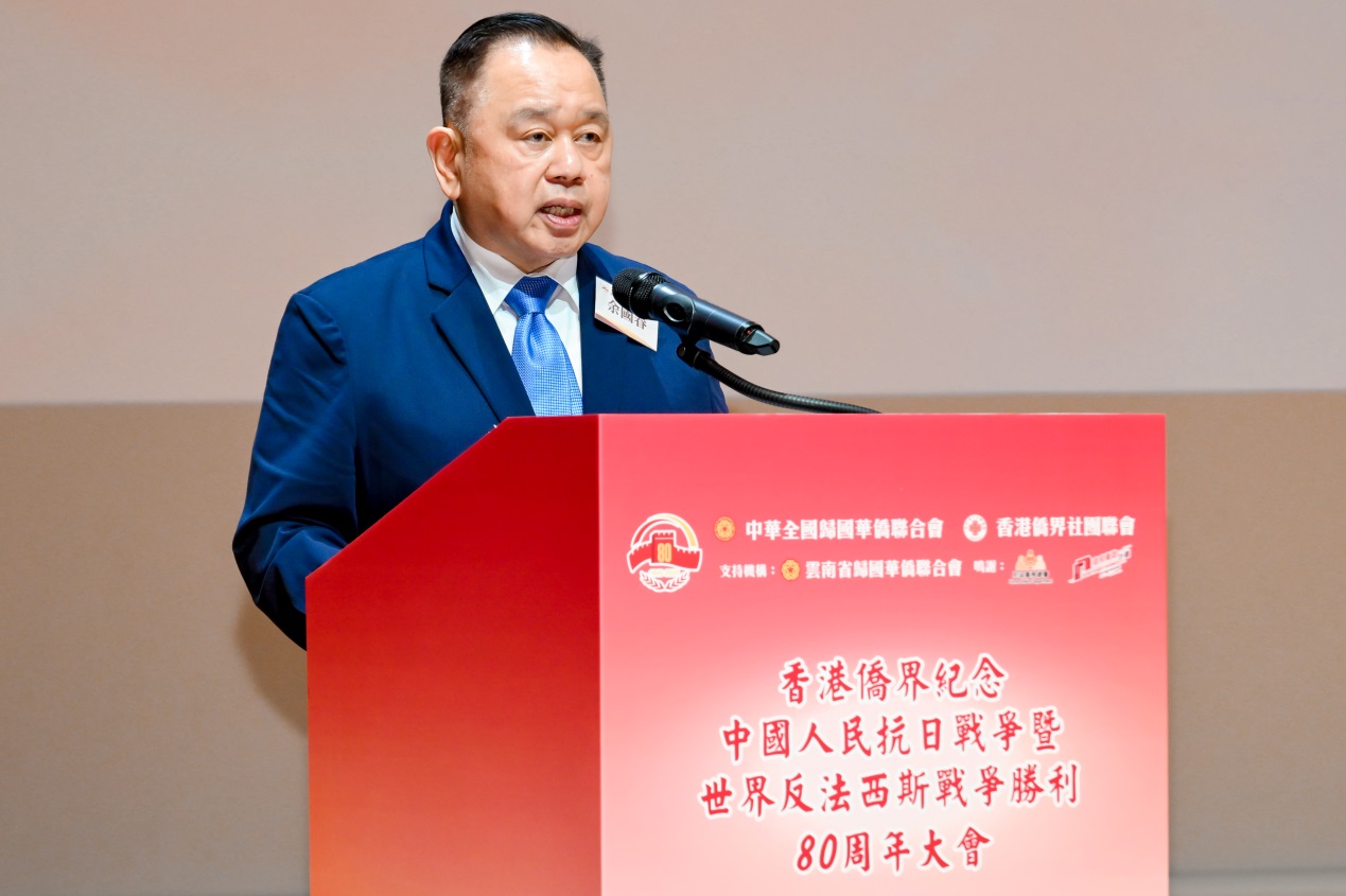 8月31日,由中國僑聯(lián)、香港僑界社團聯(lián)會共同主辦的香港僑界紀念中國人民抗日戰(zhàn)爭暨世界反法西斯戰(zhàn)爭勝利80周年大會在香港演藝學院舉行。