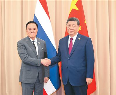 習(xí)近平指出,中國(guó)和泰國(guó)是好鄰居、好朋友、好親戚、好伙伴,常來(lái)常往、親如一家。2022年11月我訪問(wèn)泰國(guó),中泰關(guān)系進(jìn)入構(gòu)建命運(yùn)共同體的新階段,兩國(guó)友好根基更牢、合作動(dòng)能更強(qiáng)。今年是中泰建交50周年暨“中泰友誼金色50年”。站在新起點(diǎn)上,雙方要繼往開(kāi)來(lái),共同推動(dòng)中泰命運(yùn)共同體建設(shè)走深走實(shí),助力兩國(guó)各自現(xiàn)代化進(jìn)程,為地區(qū)和平穩(wěn)定和發(fā)展繁榮作出更大貢獻(xiàn)。
