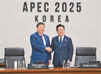 當(dāng)?shù)貢r間11月1日上午,國家主席習(xí)近平出席亞太經(jīng)合組織第三十二次領(lǐng)導(dǎo)人非正式會議東道主交接環(huán)節(jié),宣布中方將于明年11月在廣東省深圳市舉辦亞太經(jīng)合組織第三十三次領(lǐng)導(dǎo)人非正式會議。這是習(xí)近平同韓國總統(tǒng)李在明在交接環(huán)節(jié)上握手。新華社記者 謝環(huán)馳攝