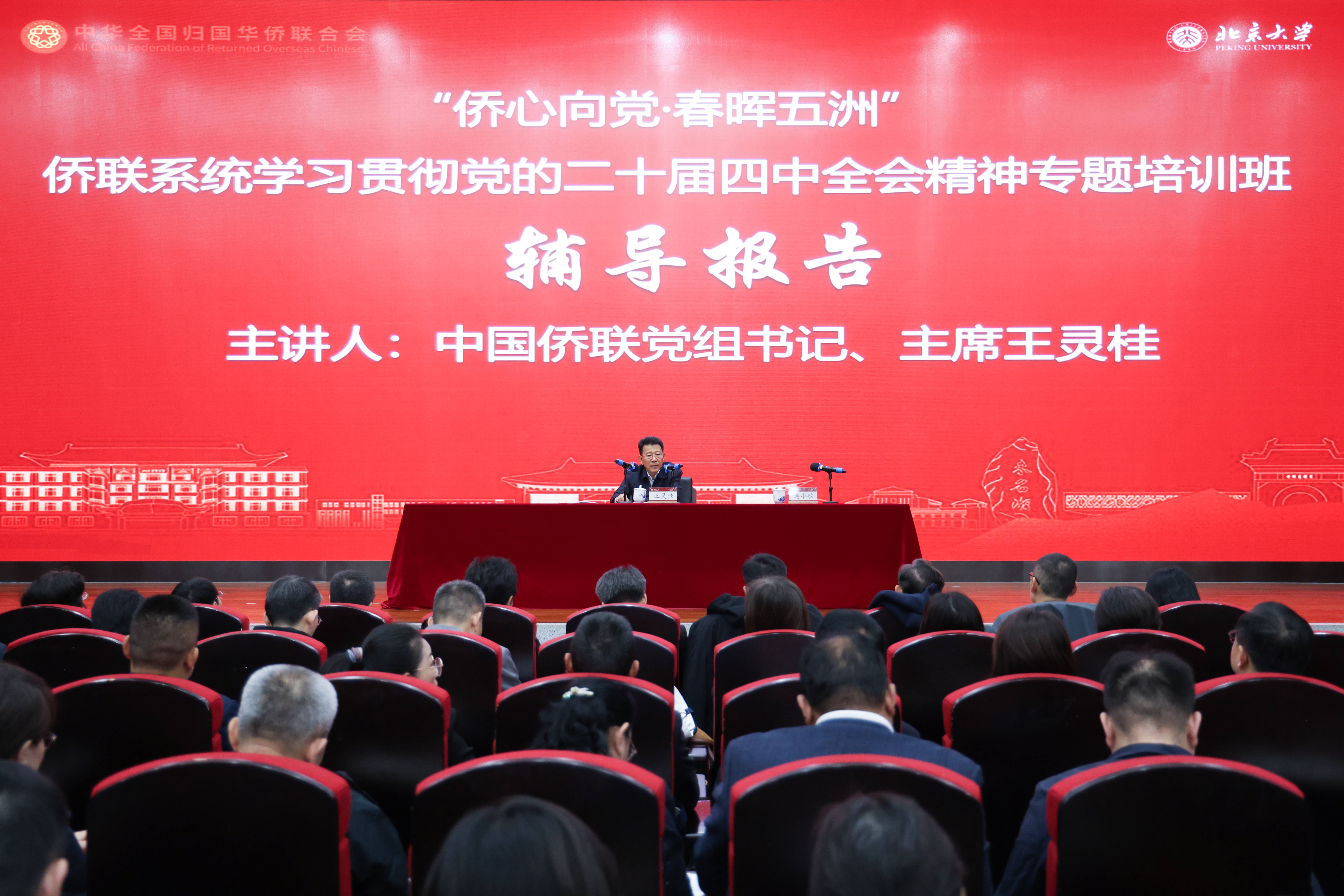 11月11日上午,“僑心向黨·春暉五洲”僑聯(lián)系統(tǒng)學(xué)習(xí)貫徹黨的二十屆四中全會(huì)精神專題培訓(xùn)班在北京大學(xué)開班。中國僑聯(lián)黨組書記、主席王靈桂出席開班式并作動(dòng)員講話和輔導(dǎo)報(bào)告。中國僑聯(lián)黨組成員、副主席,直屬機(jī)關(guān)黨委書記連小敏主持開班式。北京大學(xué)黨委副書記、統(tǒng)戰(zhàn)部部長姜國華致辭。