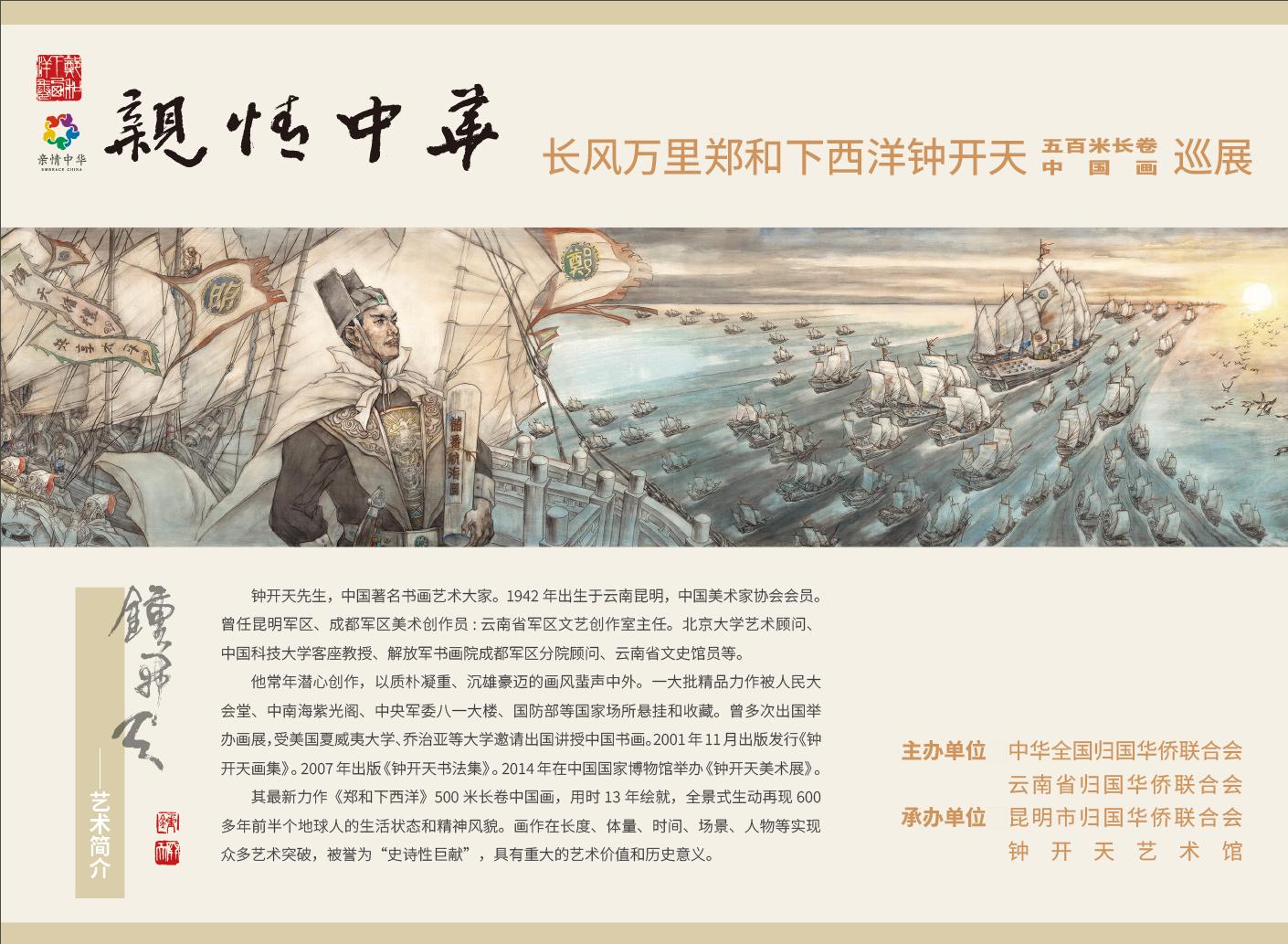 2025年10月23日至27日,中國(guó)僑聯(lián)聯(lián)合云南省僑聯(lián)赴馬來(lái)西亞和印度尼西亞成功舉辦3場(chǎng)“親情中華·長(zhǎng)風(fēng)萬(wàn)里”——鐘開天《鄭和下西洋》500米長(zhǎng)卷中國(guó)畫巡展和2場(chǎng)“親情中華·品味云南”滇菜烹飪技藝交流活動(dòng)。