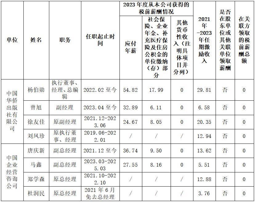 備注:上表披露為我會(huì)所屬企業(yè)負(fù)責(zé)人2023年度全部應(yīng)發(fā)稅前薪酬(不含發(fā)放的以往年度績效年薪)。